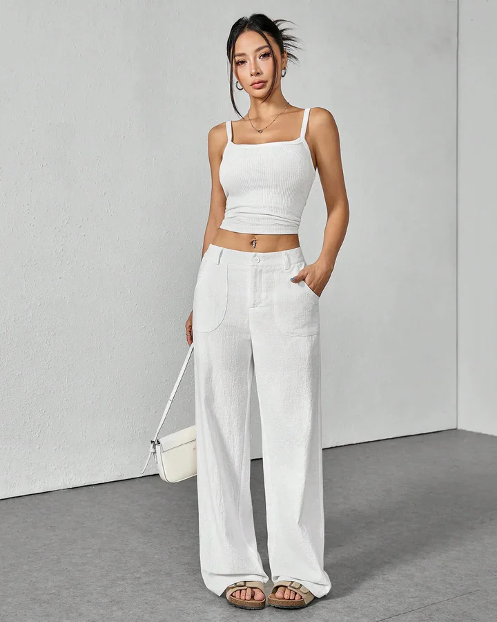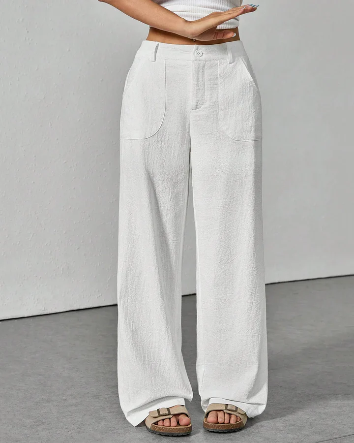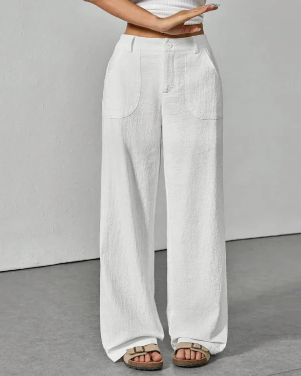 Be the first to review “High Waist Wide Leg Linen Trousers In White”