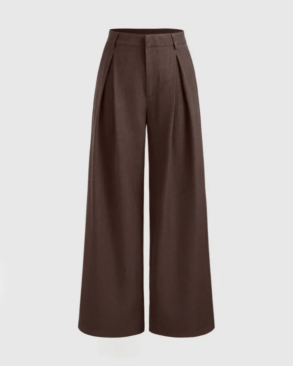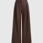 Previous Next Korean Style Trousers with Baggy Fit In Dark Chocolate