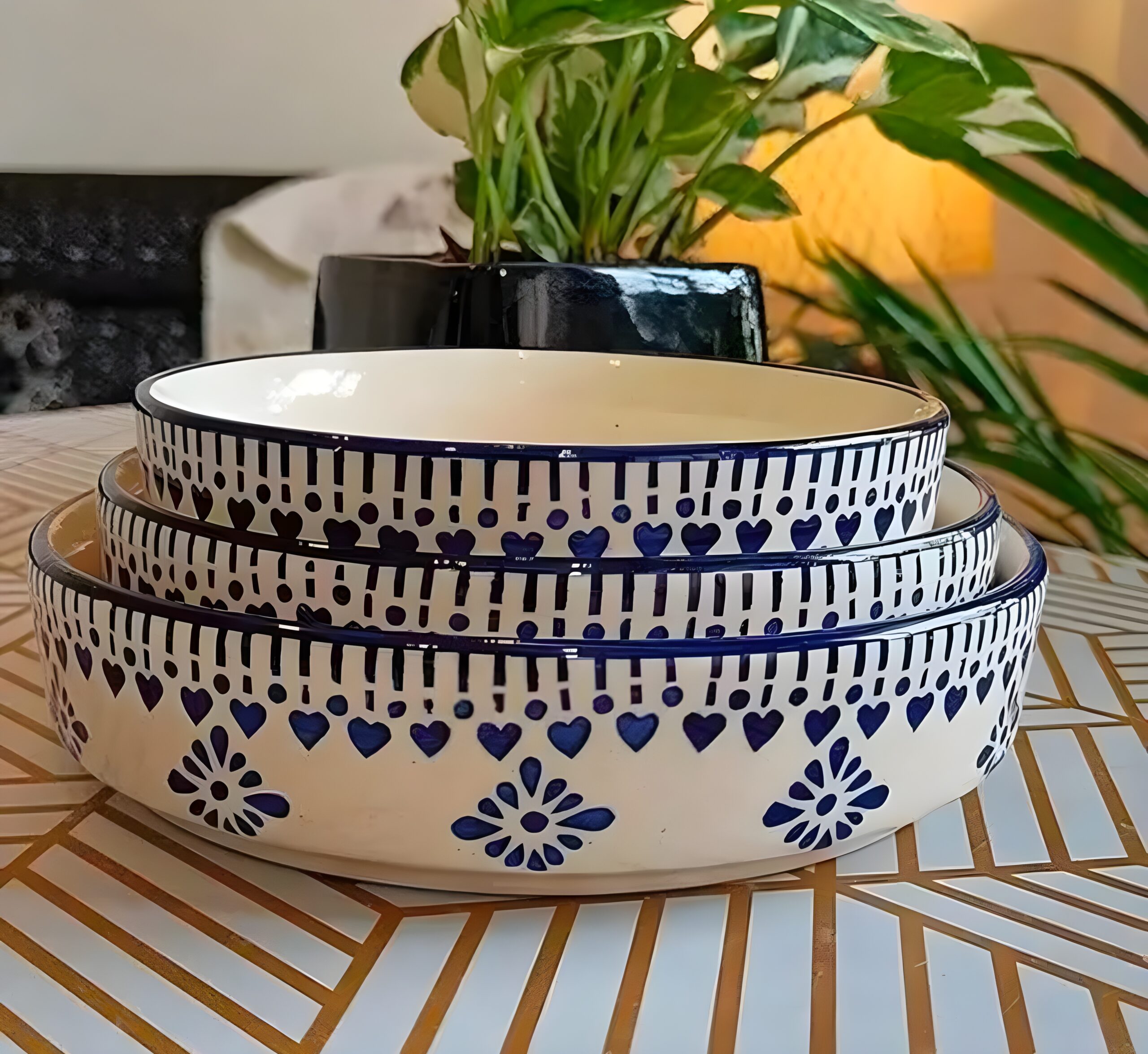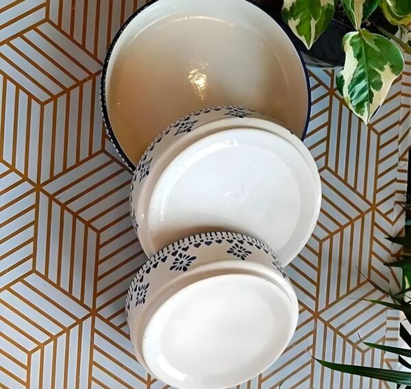 Bring charm to your dining space with this handcrafted ceramic bowl set. Designed with a beautifully hand-painted blue pattern, these stackable bowls are perfect for serving salads, curries, snacks or pasta. Crafted from premium ceramic, they’re durable, microwave-safe and add an elegant, artisanal touch to any table setting — ideal for daily meals or hosting guests.